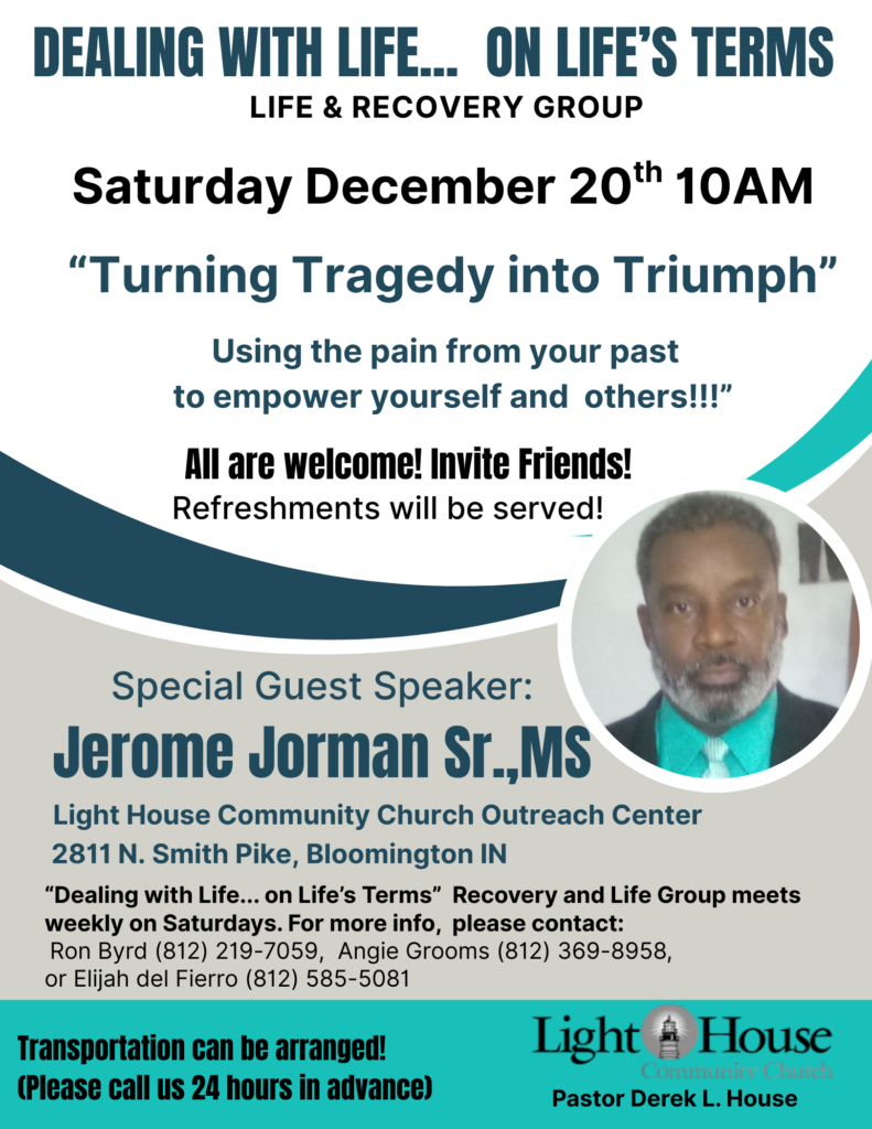 Due to inclement weather, there are no regular services at Light House today, December 14th. Everyone is asked to join on Zoom at 7pm. Pass the word!